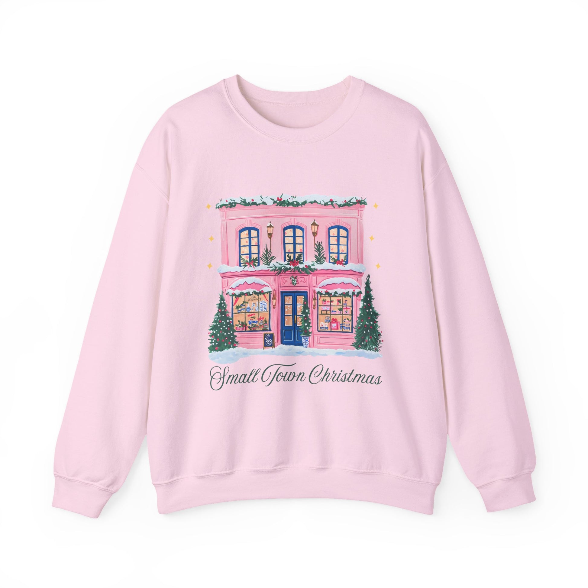 Crewneck Sweatshirt | Small Town Christmas Pink Shop Holiday Graphic